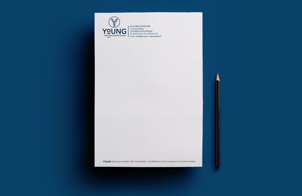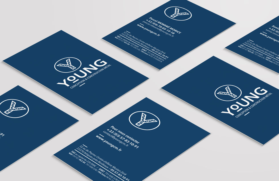 Création de l’identité visuelle de la société de construction et conception métal YOUNG CM basée à Bordeaux (33).